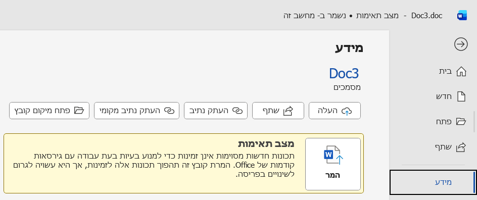 המרת קובץ וורד DOC לDOCX
