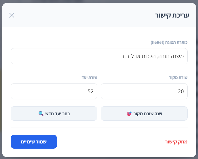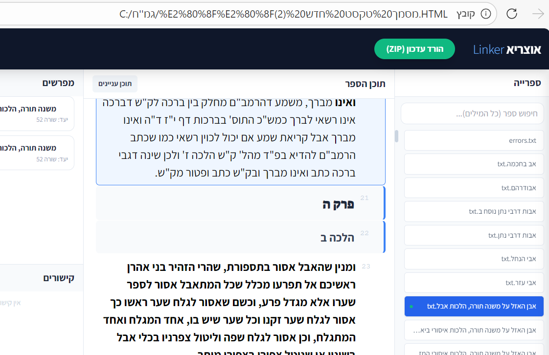 @Elie-Gambache כתב במדריך ליצירת ועריכת קישורים ומפרשים באוצריא עם תוכנה קלה לתפעול:
